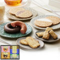 風味豊かなバニラクリームをサンドしたバニラゴーフレットや、上品な味わいに仕上げたチョコゴーフレット、何層にも重ねたパイ生地に細かく砕いたアーモンドを挟み、サックリと焼き上げたアーモンドパイ、チョコをサンドしたやさしい甘さのショコラスティックパイに、チョコとストロベリーの焼ドーナツをセットしました。お菓子好きな人にも満足な詰合せです。