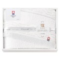 お肌になじみ、水分をしっかり吸収してくれるのでとても使いやすく贈り物に最適です。金糸・銀糸を使うことでさりげない豪華さと気品をそなえています。タオルの名産地「今治」から純白のタオルに気品をのせて。