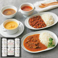 【内容】コーンのクリームスープ160g×2、フレンチオニオンスープ160g、ミネストロンスープ160g、ビーフカレー190g、ダルカレー180g×各1