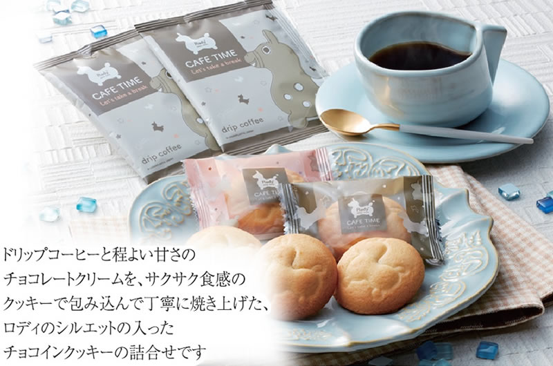【内容】チョコインクッキー×4、ドリップコーヒー8g×2【賞味期間】製造日より180日【アレルゲン】卵・乳・小麦(大豆・アーモンド)【箱サイズ】175×190×30mm【重量】145g【生産国】日本※商品のデザイン・内容等が変更になる場合がございます。ご了承ください。