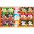 【内容】フルーツゼリーメロン 52g×2個、フルーツゼリーピーチ 52g×2個、フルーツゼリーグレープ 52g×2個、シャーベットゼリーマンゴー 52g×2個、シャーベットゼリーピンクグレープフルーツ 52g×2個、シャーベットゼリー山形ラ・フランス 52g×2個、ヨーグルトムースストロベリー 55g×1個、ヨーグルトムースプレーン 55g×1個、ヨーグルトムースマンゴー 55g×1個